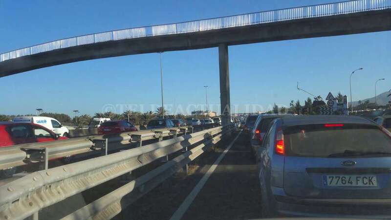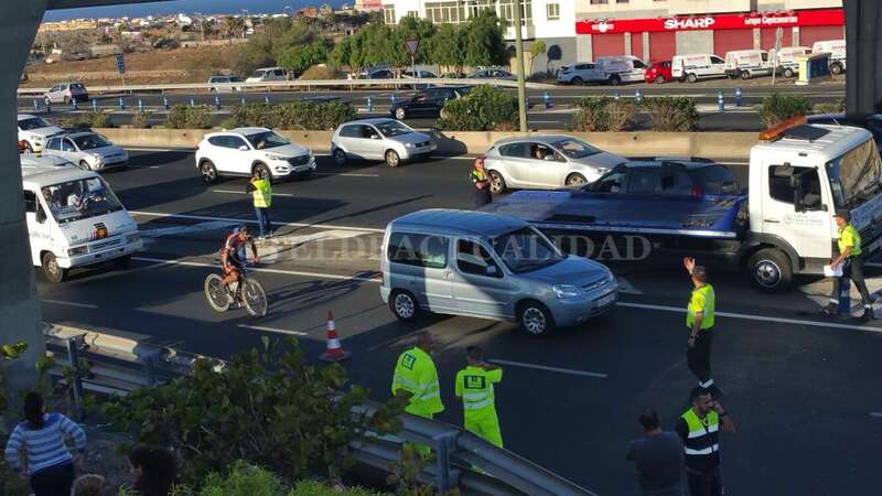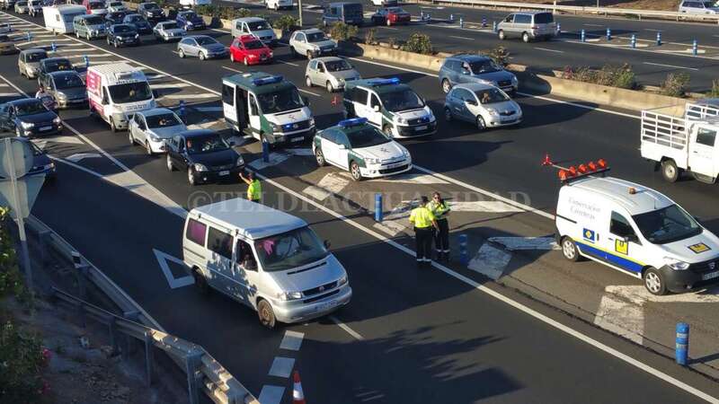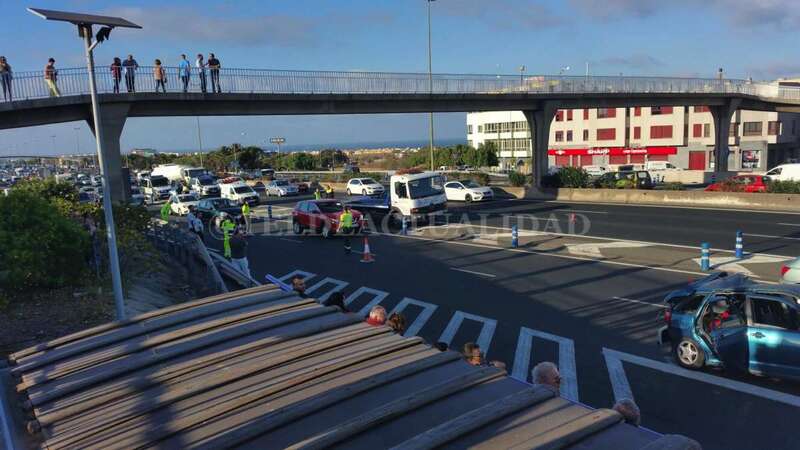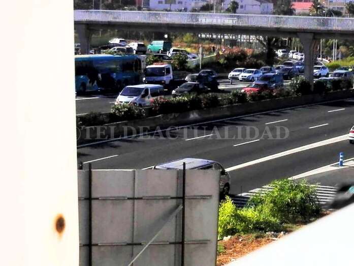 Durante más de media hora el accidente provoco la ralentización del tráfico rodado en la GC-1. El embotellamiento llegó a la altura de La Pardilla.