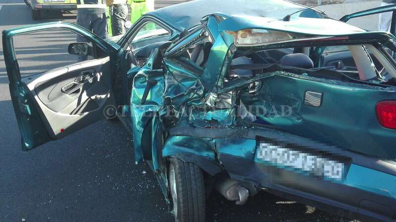 La peor parte de la colisión se la llevó el turismo, un Seat Ibizia de color verde metalizado. Uno de sus dos ocupantes quedó atrapado y tuvo que ser excarcelado por los bomberos. Junto a la otra persona que viajaba en el automóvil, ambos hombres de mediana edad, tuvo que ser evacuado en ambulancia hasta un centro médico, aquejado de una cervicalgia.
