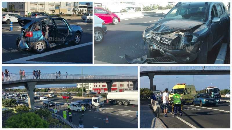 Telde.- Tres vehículos, un turismo, un todocamino y una grúa, han protagonizado esta tarde un aparatoso accidente de tráfico en la GC-1 a su paso por Telde, a la altura del Marpequeña y en sentido sur.