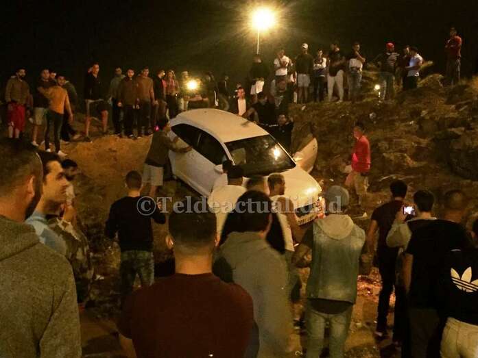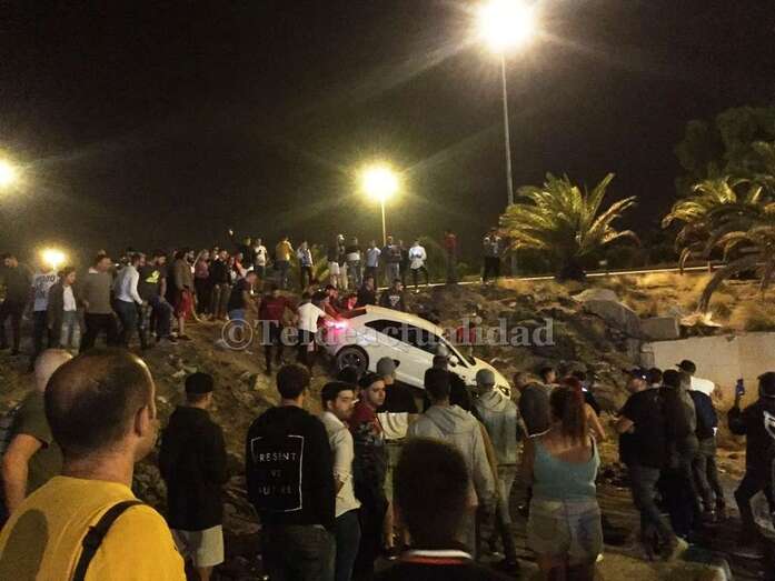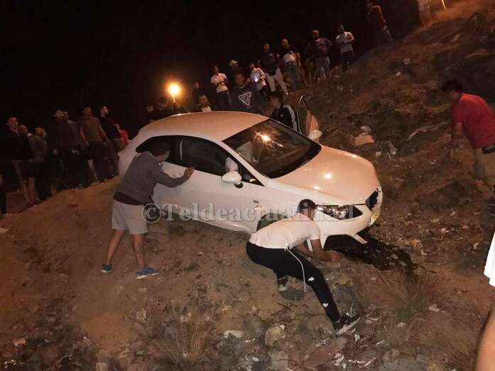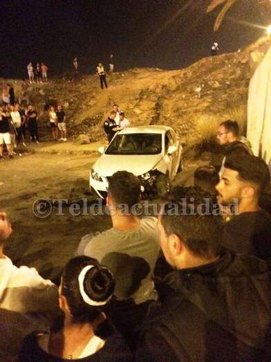 Telde.- Un gran susto se produjo anoche en los aparcamientos del sector comercial de La Mareta cuando un vehículo de color blanco que intervenía, según algunas fuentes, en una supuesta carrera ilegal de coches se salió de la carretera y cayó tres metros por un terraplén. El conductor no quiso ser atendido, según ha podido saber TELDEACTUALIDAD.
