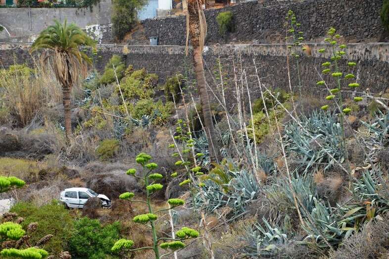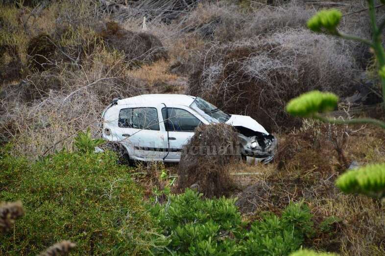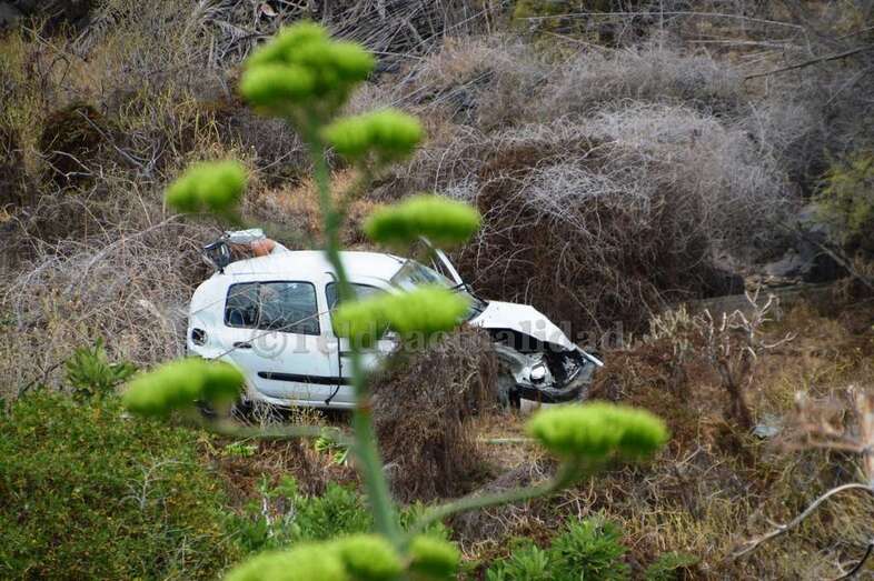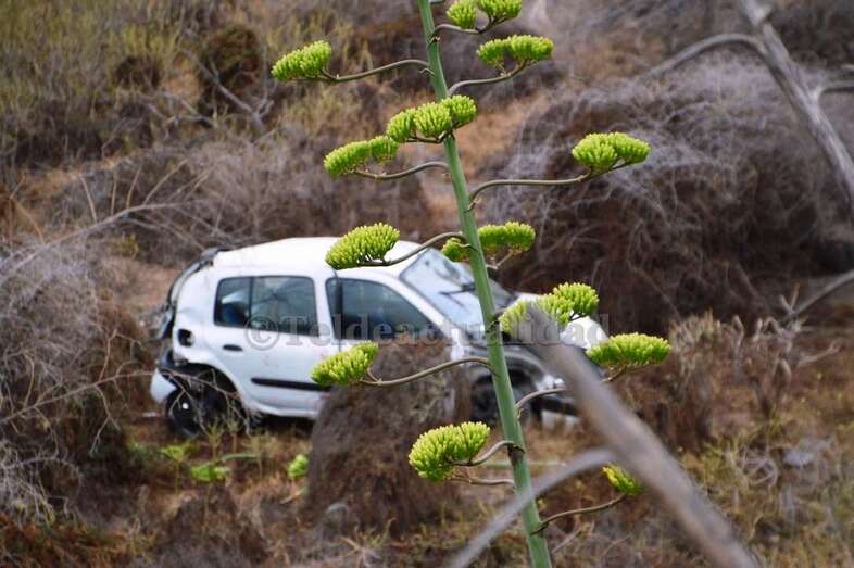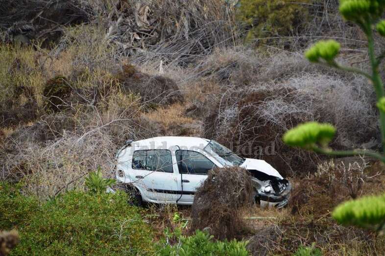 El vehículo, un Renault Clío de color blanco, con cinco personas a bordo, voló por encima de un muro de seguridad después de impactar contra una pared rocosa situada a la izquierda de la vía bajaba hacia Telde. El resultado fue que el coche se precipitó desde una altura de 15 metros y terminó en el fondo de un pequeño barranquillo, a la altura de la calle de Diana, en Caserones Bajos.