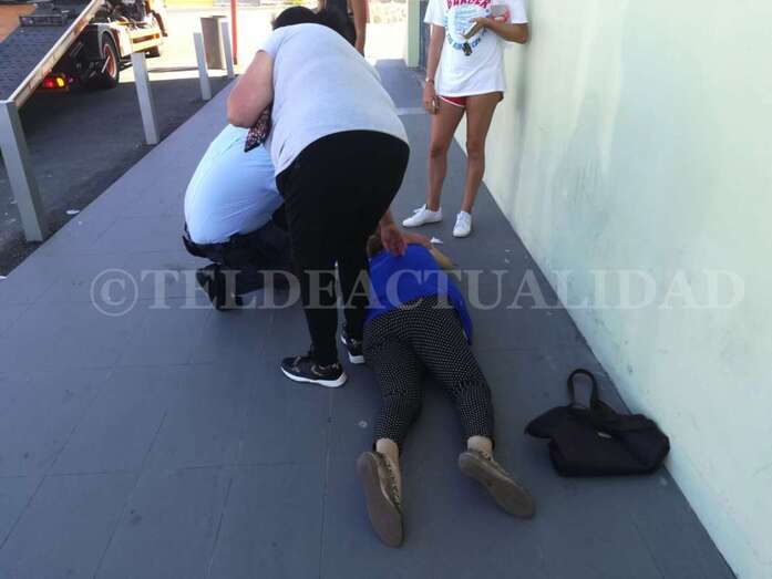 Tumbada en el suelo, empezó a padecer espasmos, por lo que varios ciudadanos y los responsables de seguridad del establecimiento solicitaron la presencia de una ambulancia del Servicio de Urgencias Canario (SUC).