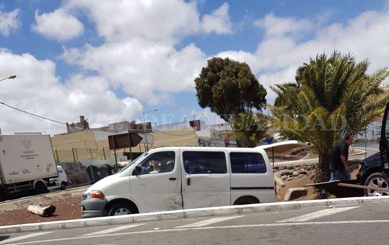 Telde.- Dos vehículos, una furgoneta y un todoterreno, se han visto involucrados en un accidente de tráfico acaecido hace unos minutos en el casco de Jinámar. Ambos automóviles impactaron, al parecer de manera frontolateral y con mucha fuerza, y se salieron de la vía.