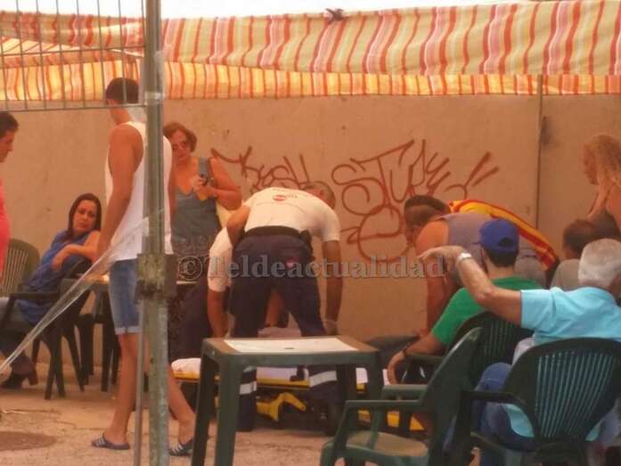 La persona que sufrió el desvanecimiento, quizás debido al calor, fue trasladada al Hospital Insular por una ambulancia de soporte vital básico del Servicio Canario de Urgencias, que, según testigos, tardó más de media en acudir a prestar el servicio.