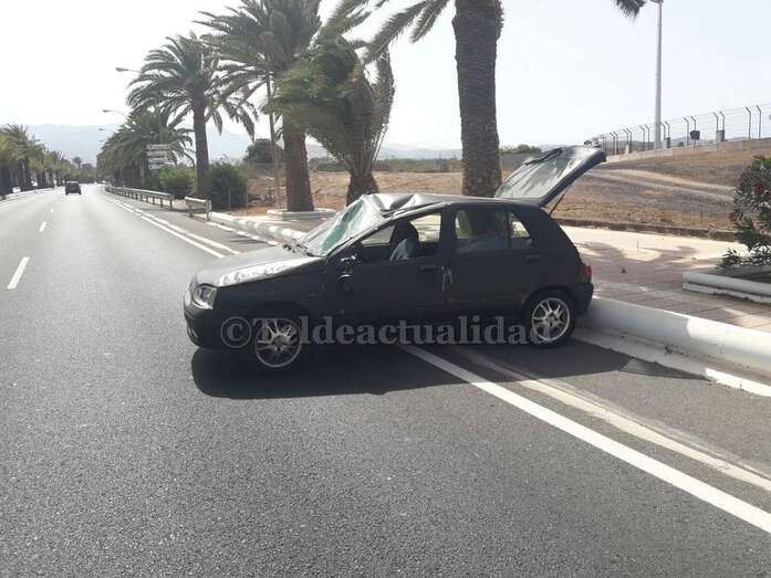 Telde.- Un vehículo sufrió esta tarde un aparatoso vuelco en la Avenida del Cabildo, a la altura de las instalaciones deportivas de El Hornillo, en dirección hacia el casco de la ciudad. No hubo que lamentar afectados a pesar de la espectacularidad del siniestro.