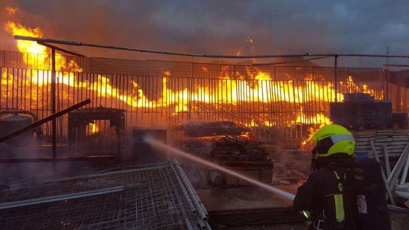 Aunque las primeras informaciones apuntaban a que el incendio se había desatado en una nave industrial, fuentes policiales han precisado a este periódico que las llamas han afectado a un amplio solar vallado donde estaban apilados cientos de palés de madera de hasta 15 metros y un número indeterminado de vehículos, especialmente camiones y furgones, así como turismos, que han quedado calcinados en su mayoría por el fuego.