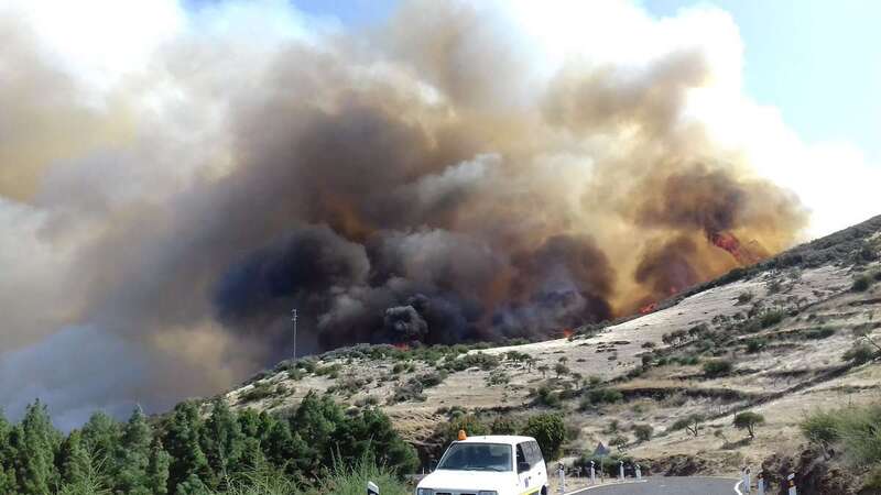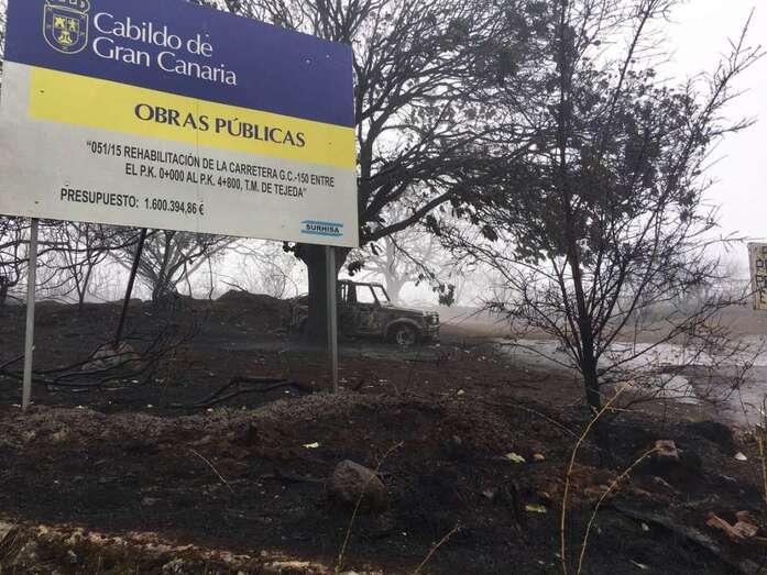 Comprobando estado carreteras y apertura de las mismas.Zona donde se inició incendio #IFTejeda #IFGranCanaria.@CarreterasGC @GranCanariaCab pic.twitter.com/Wft6EWGcGp