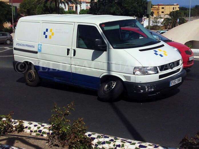 El vehículo, de la Gerencia de Atención Primaria del Servicio Canario de la Salud (SCS), sufrió la rotura de la rótula delantera derecha, cediendo la rueda y quedando bloqueada la furgoneta en el carril exterior de la glorieta. Afortunadamente no se han registrado daños personales.