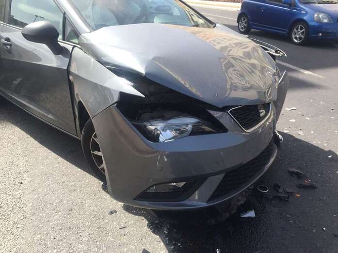 El impacto, aparatoso y fuerte, provocó importantes daños en la parte frontal del turismo, automóvil en el que viajaba una mujer y una niña. Una ambulancia del Servicio de Urgencias Canario (SUC) se desplazó hasta el lugar de los hechos para atender a los ocupantes de ambos vehículos, que en un primer momento no habrían sufrido heridas de consideración.
