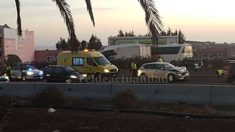 En la colisión se han visto implicados varios vehículos y hasta el lugar del suceso se trasladó una ambulancia de soporte vital básico del Servicio de Urgencias Canario, cuyo personal atendió a un mujer de 31 años con traumatismo en una mano y la trasladó al Centro Médico Arnao.