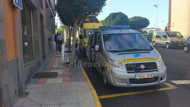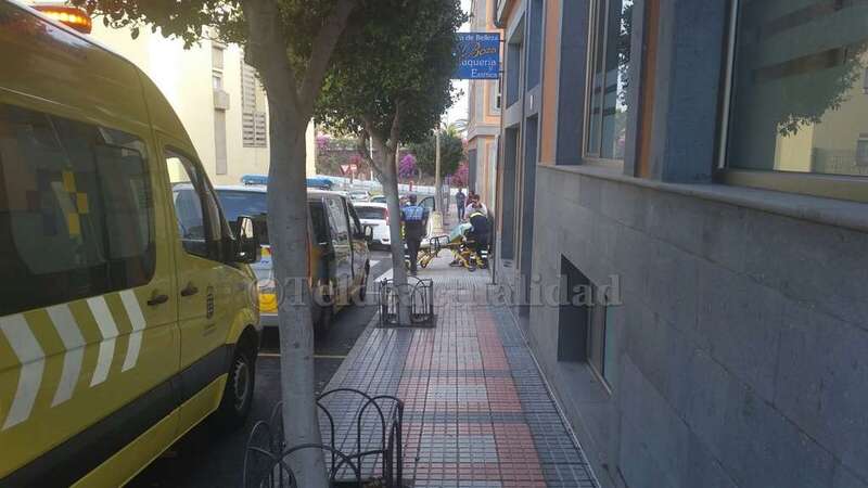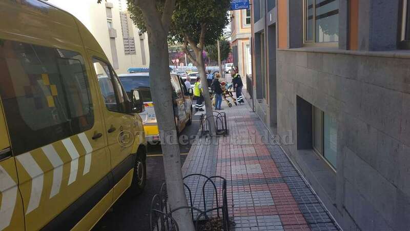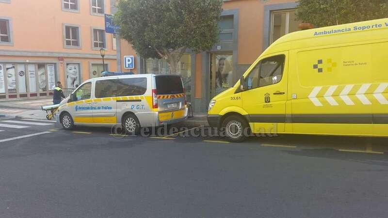 Personal de una ambulancia de soporte vital básico del Servicio de Urgencias Canarias atendió in situ a la afectada de un traumatismo leve en una pierna y la trasladó al Centro Médico Arnao de esta ciudad.