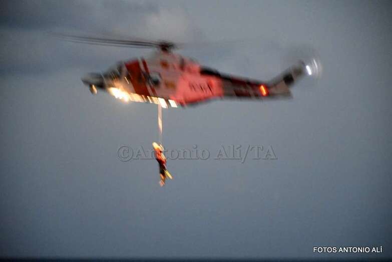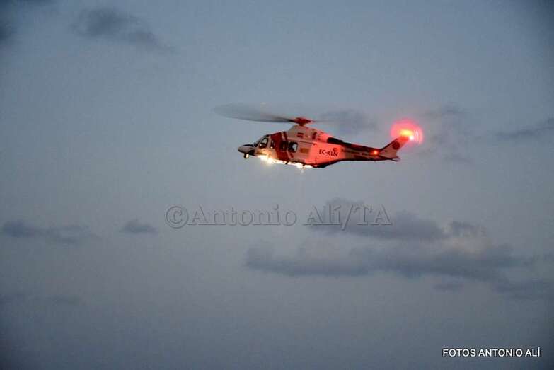 El cuerpo casi sin vida, según fuentes de la Policía Local y de Proactiva, fue localizado flotando en el mar boca abajo, a 10 metros del rompiente de la ola, e izado por el helicóptero Helimer de Salvamento Marítimo desplazado al lugar.