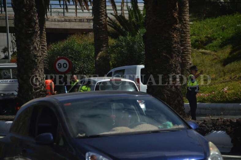 Hasta el lugar del siniestro se han desplazado varias patrullas de la Policía Local de Telde, grúas y operarios del área de Carreteras del Cabildo gran canario.