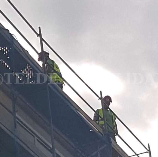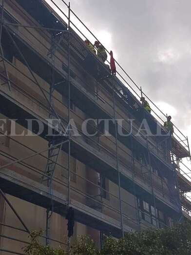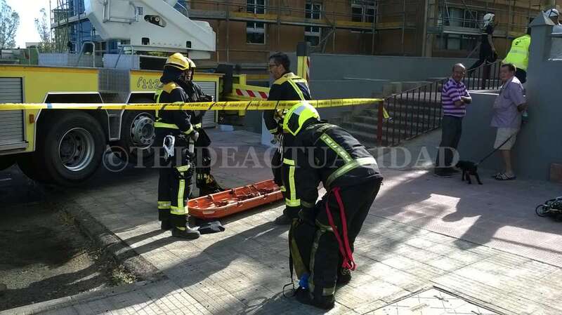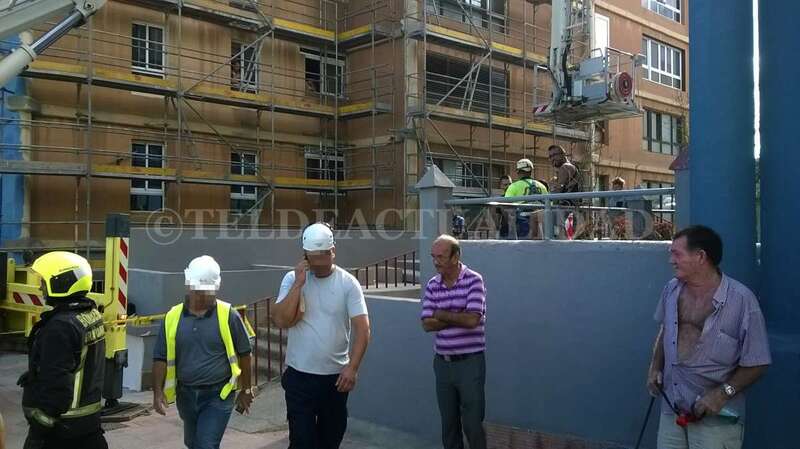 Con ayuda de un camión escala lograron descender al joven que, al parecer se habría resbalado, quedando sobre el andamio, cuando se encontraba trabajando a la altura de un 5º piso, a unos 20 metros, según han relatados algunos testigos.