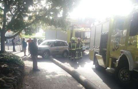 Dos vehículos de bomberos acudieron desde el parque zonal de La Garita para liberar al vehículo, que quedó bloqueado sobre el bordillo, y también para limpiar la vía.