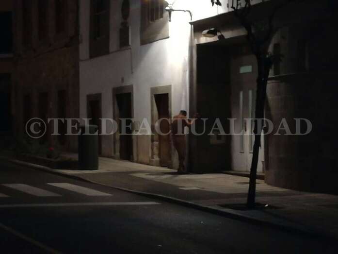 Los hechos se produjeron aún con la oscuridad de la noche, sobre las 07.15 horas. El individuo, sin ninguna prenda de ropa encima, se tambaleaba por esta céntrica vía de San Juan, llegando incluso a invadir el asfalto en algunos momentos.