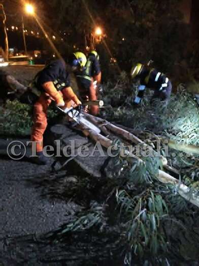 Telde.- Los bomberos del parque zonal de Telde fueron movilizados anoche ante la caída de un viejo árbol en la entrada al Valle de Jinámar por la rotonda de Eucaliptos I desde la antigua carretera GC-100.