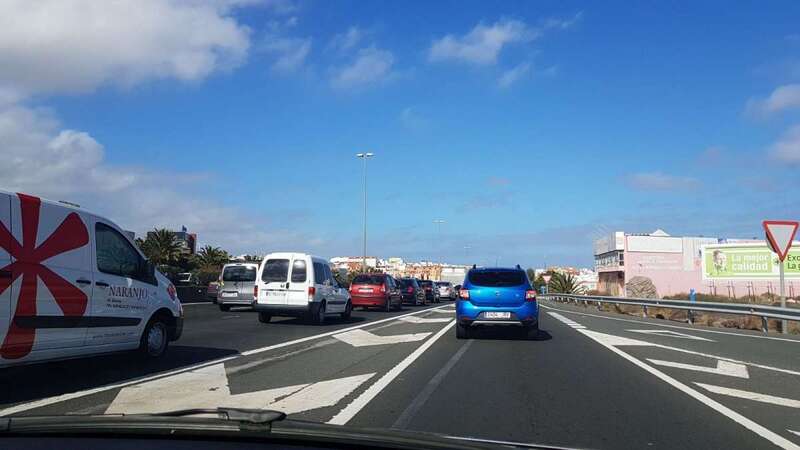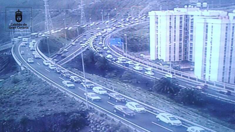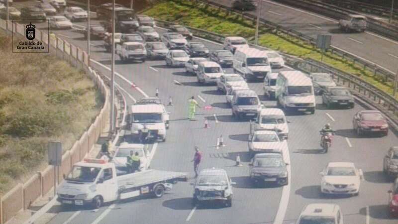 Telde.- Dos accidentes ocurridos a primera hora de esta tarde en la potabilizadora y La Paterna están provocando importantes retenciones de tráfico en la GC-1. Colas que ya afectan al municipio de Telde, alcanzando el barrio de Las Huesas.