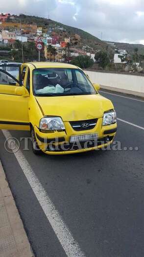 Telde.- Una colisión por alcance se acaba de producir en el Puente de los Siete Ojos, en la entrada al casco urbano por la antigua carretera de Jinámar (G-100). TA avanza imágenes del accidente.