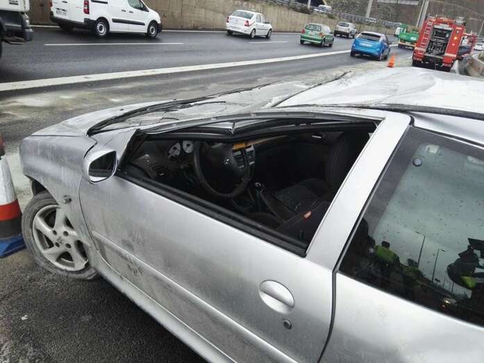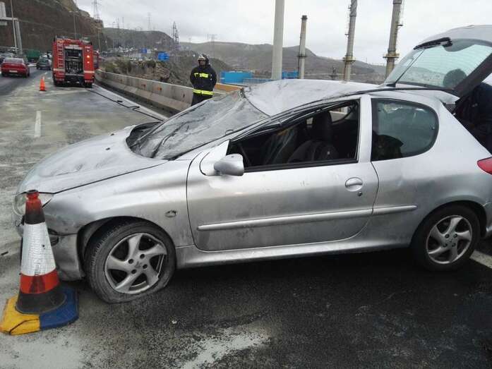 Un Peugeot de color gris que discurría por el carril derecho volcaba en paralelo al desvío de la GC-3. Fruto del siniestro derramaba líquidos sobre la vía y quedaba de lado obstaculizando la circulación, concretamente en el kilómetro 4 en dirección hacia Las Palmas de Gran Canaria.