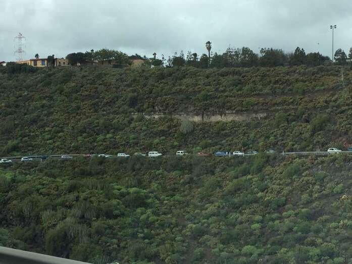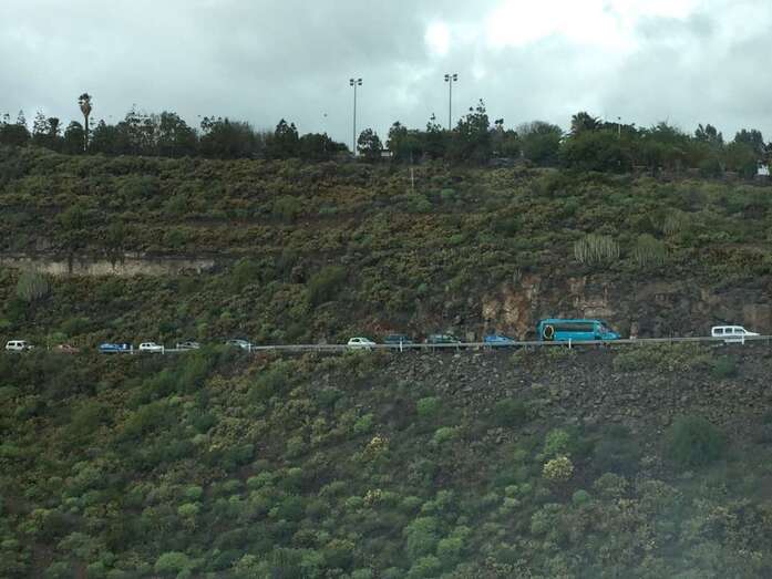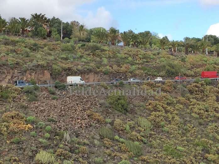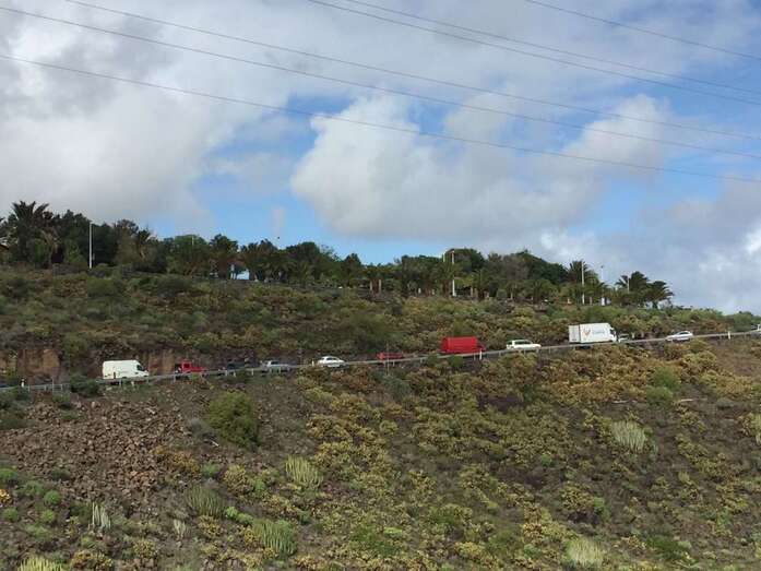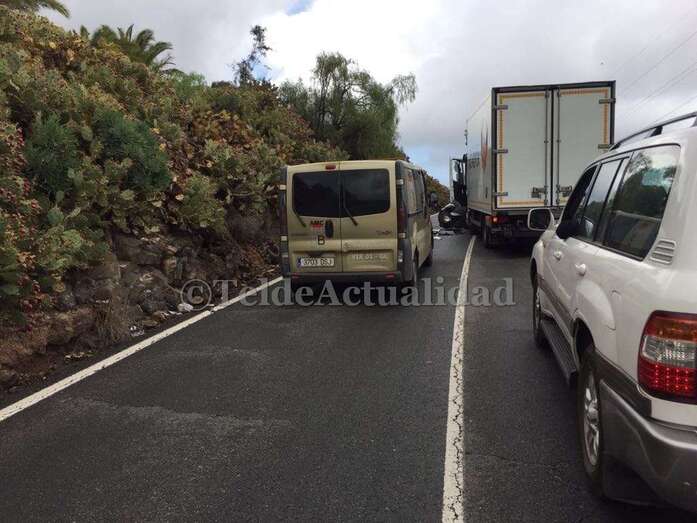 Telde.- Dos vehículos, un turismo y un camión han sufrido un accidente a primera hora de esta tarde en la GC-100, en las inmediaciones del campo de tiro de Lomo Pollo. La carretera ha quedado totalmente bloqueada y se está registrando un gran atasco.