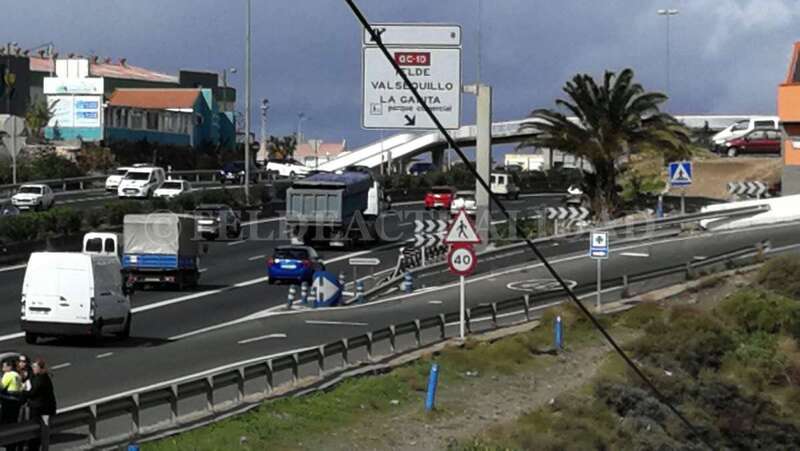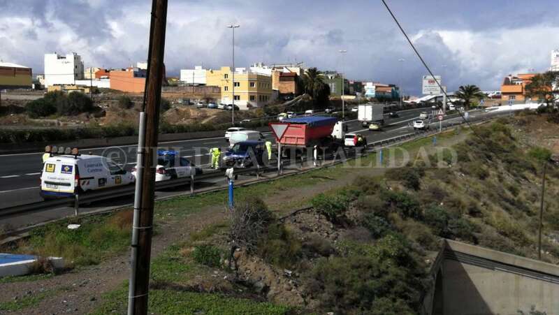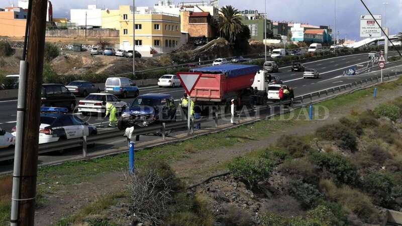 Telde.- Un todoterreno ha colisionado por alcance contra un camión a primera hora de esta tarde en la GC-1 a la altura del acceso al barrio teldense de Marpequeña en sentido hacia la capital grancanaria.