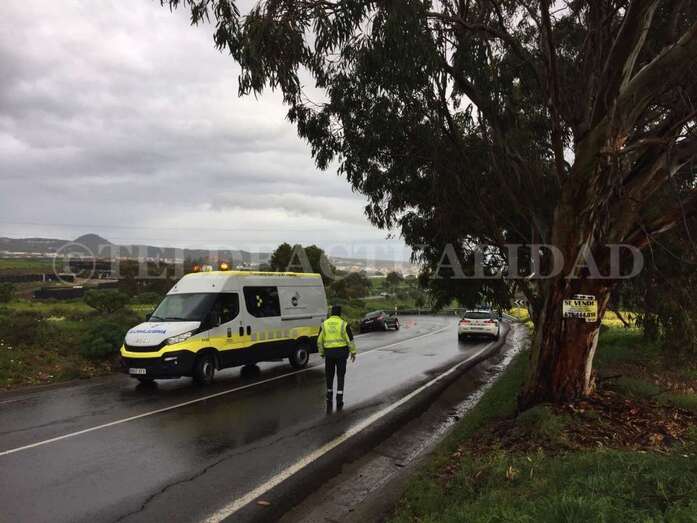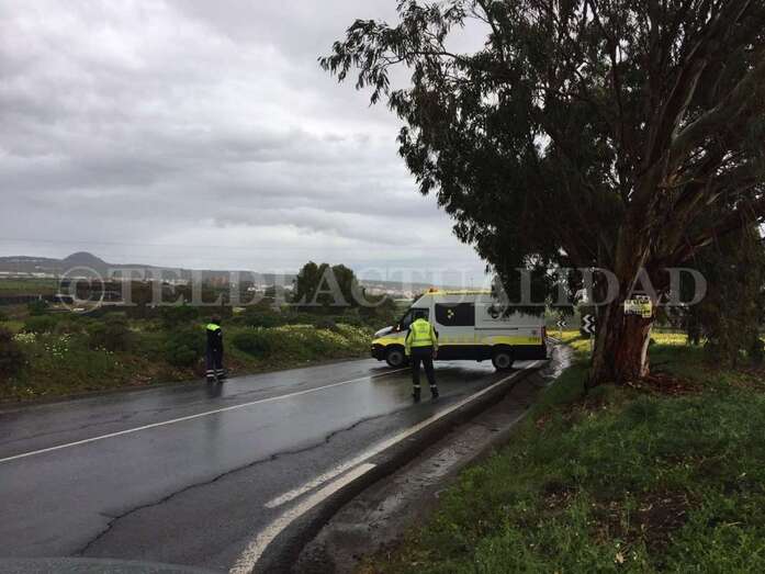 Como consecuencia de esto, el turismo quedó encajado en la cuneta de la carretera de Lomo Cementerio a la altura de la Cruz de Jerez. Hasta allí acudió una patrulla de la Agrupación de Tráfico de la Guardia Civil, que señalizó la zona hasta que se pudo retirar el vehículo.