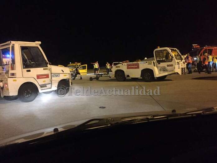 Según las primeras informaciones captadas por TELDEACTUALIDAD, el conductor del vehículo guía de color amarillo quedó atrapado en su interior y su estado podría revestir cierta gravedad, También ha sido atendido por efectivos de emergencia y sanitarios del servicio médico del propio aeropuerto de lesiones de consideración la persona que iba al volante del furgón de Groundforce, empresa de asistencia en tierra a los aviones.