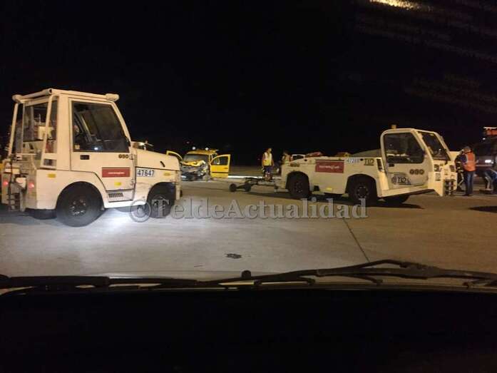 Ampliación: Al Hospital Insular los dos heridos en la fuerte colisión entre un vehículo señalero y un furgón en la plataforma del Aeropuerto
