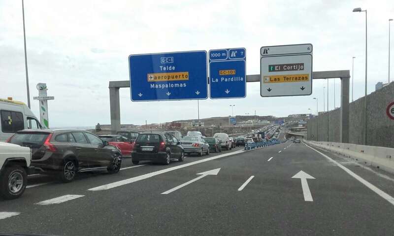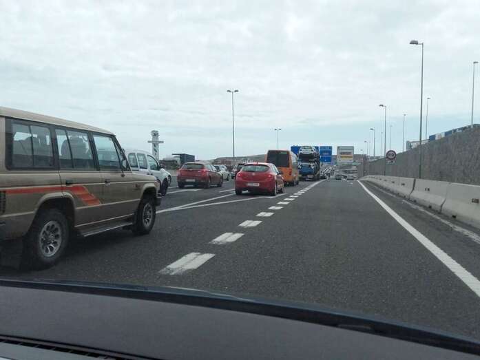 El accidente provocó retenciones de tráfico kilométricas en la principal arteria viaria de la Isla. Un atasco que en un momento llegó a rebasar la altura del Valle de Jinámar con un ritmo de circulación muy, muy lento, con los vehículos prácticamente detenidos.