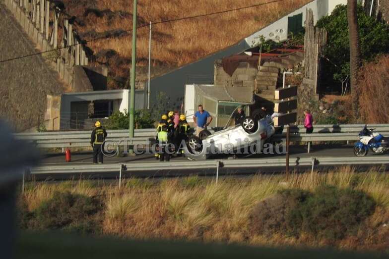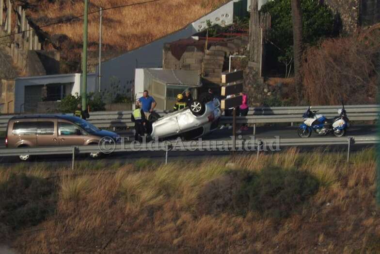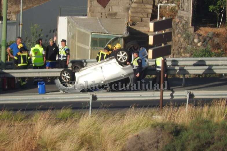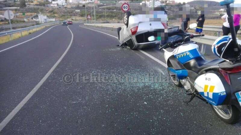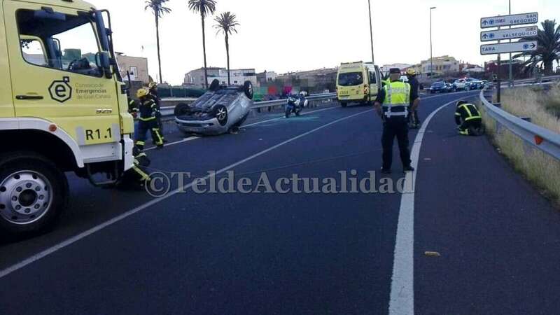 Telde.- Cuatro personas resultaron con heridas a última hora de esta tarde en el vuelco de un vehículo ocurrido a la altura de la rotonda de Tara, en la vía de circunvalación al casco urbano de Telde.