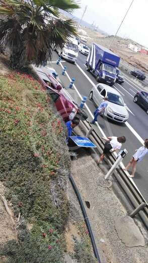 Al lugar del incidente acudieron agentes de la Guardia Civil de Tráfico, operarios del Servicio de Carreteras y una unidad medicalizada del SUC (Servicio de Urgencias Canario), atendiendo a un menor y un adulto heridos sin gravedad.