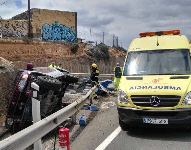 Telde.- Un menor y un adulto fueron atendidos por unidades del SUC y del ITS tras salirse de la vía el todoterreno en el cual circulaban en la entrada de La Pardilla desde la GC1 dirección sur.