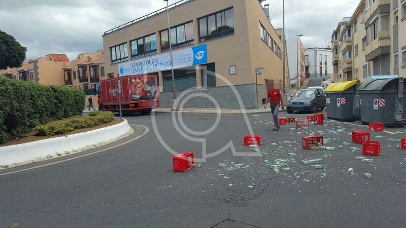 Telde.- Un camión de distribución de bebidas sufrió un incidente a primera hora de la tarde de este viernes cuando circulaba por el barrio de San Juan, junto al parque urbano y a la rotonda del Pebetero Olímpico.