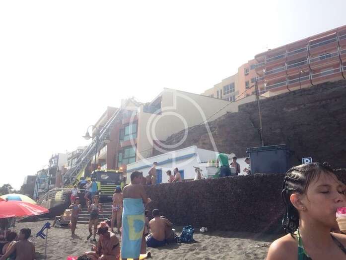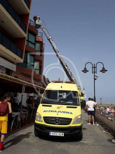 Telde.- Los bomberos del Consorcio de Emergencias acudieron esta tarde a la playa de Melenara para intentar evacuar a una persona que precisaba de asistencia sanitaria y que no podía salir de su vivienda, localizada en un último piso de un bloque ubicado en primera línea de avenida.