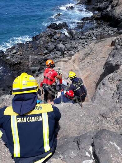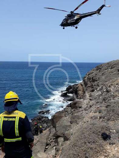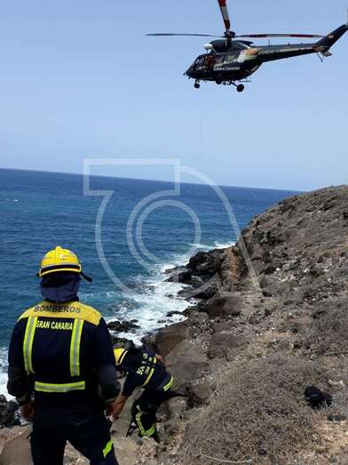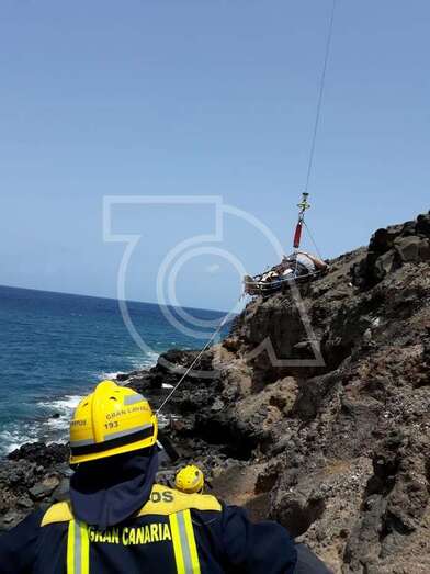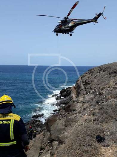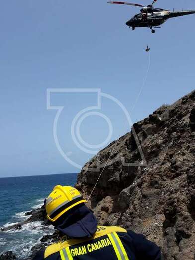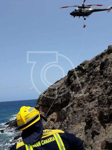 Sin embargo, dadas las características de la zona, un punto muy escarpado y resbalizado de rocas, a tan solo unos metros del mar, fue necesaria la intervención del helicóptero del GES del Gobierno de Canarias.