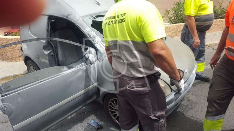 El suceso se produjo cuando el microcar transitaba por esta vía y a la altura de almacén municipal sufrió, al parecer, un cortocircuito que originó un incendio que causó importantes daños al vehículo. Su conductor resultó ileso.
