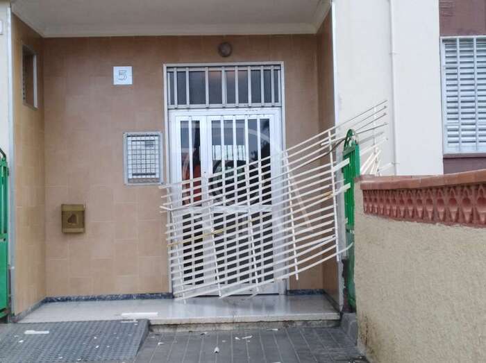 El desplome no produjo daños personales a pesar de caer justo sobre el portal del inmueble debido a que en ese momento no había nadie en las inmediaciones.