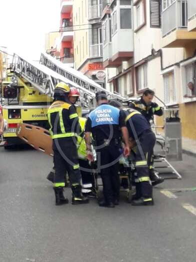 La estrechez de la escalera de acceso a su inmueble motivó la intervención de los efectivos del Consorcio de Emergencias de Gran Canaria, que se vieron forzados a usar un camión con autoescalera  y portacamillas para llegar a la planta del edificio plurifamiliar donde se hallaba la ventana de la vivienda por donde sacaron a la mujer.