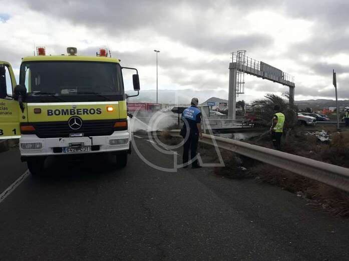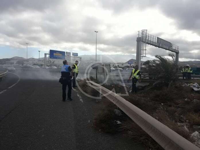 Telde.- Basura acumulada en las proximidades del acceso a Leroy Merlin desde la autovía GC-1 comenzó a arder hace unos minutos originando un conato de incendio que está ocasionado retenciones en la arteria principal de la Isla en dirección hacia la capital por el efecto mirón.