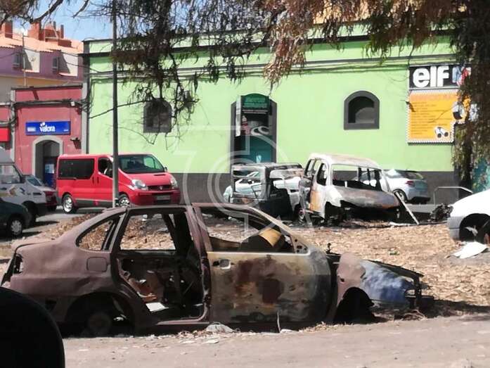 Tres vehículos abandonados arden en el casco de Jinámar, cerca del Cruce de Marzagan