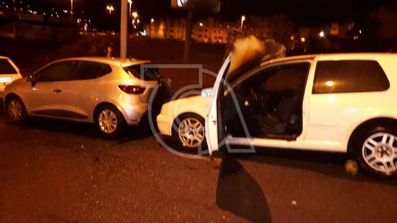 El vehículo marca Golf se incendió de forma accidental en presencia de su titular y por proximidad el fuego se extendió al Renault que se encontraba justo delante.