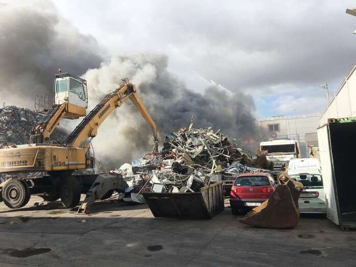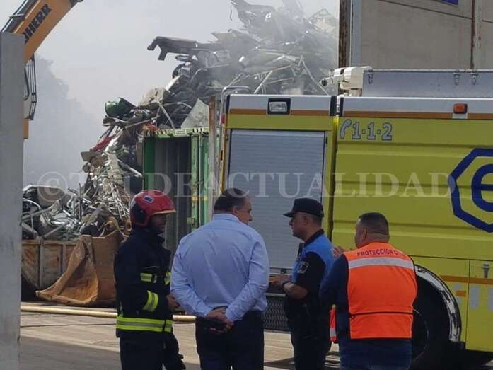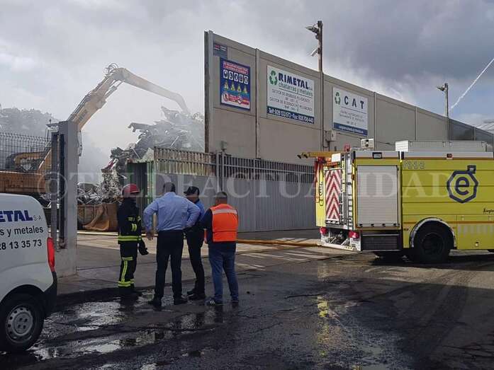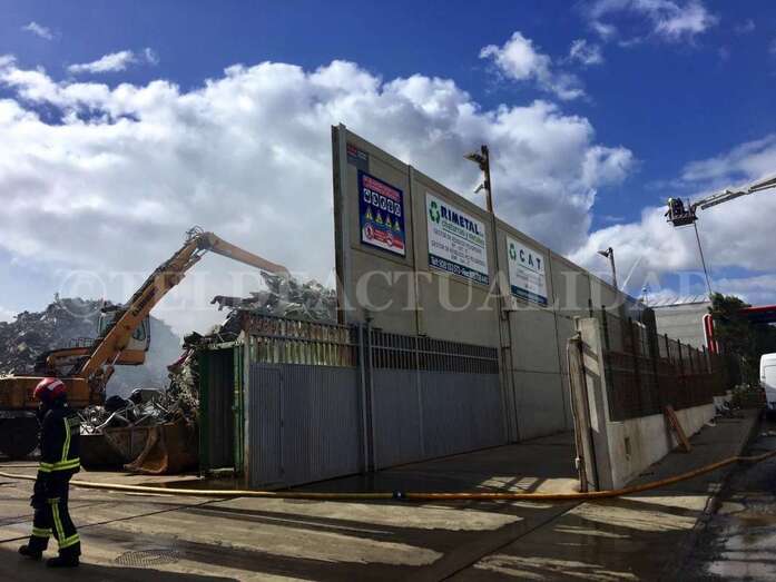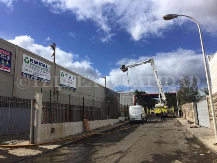 Telde.- Los bomberos del Consorcio de Emergencias de Gran Canaria sofocaron un incendio que se declaró durante la mañana de este miércoles en la zona industrial de Salinetas, en la nave de Rimetal, una empresa de residuos de metal radicada en las proximidades de las instalaciones de Disa. El fuego provocó una densa columna de humo que a lo largo de más de una hora fue visible desde diversos puntos de Telde.