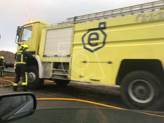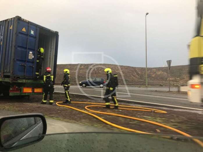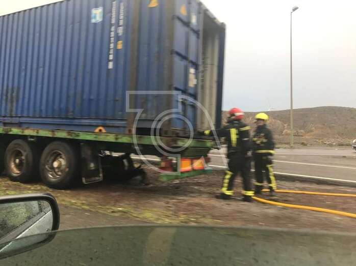 Telde.- La parte baja de un camión contenedor se ha incendiado mientras circulaba por la autovía GC-1, a la altura del punto kilométrico 5, junto a la parada de guaguas del Valle de Jinámar, en dirección hacia la capital.