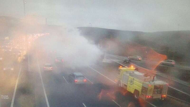 El suceso, al que han acudido bomberos del parque zonal de La Garita para sofocar las llamas, está generando retenciones en la arteria principal de Gran Canaria en la entrada a Las Palmas de Gran Canaria desde el sur, colas que también están afectando al tráfico en la GC-3, según ha informado hace unos minutos el Servicio de Carreteras del Cabildo de Gran Canaria.