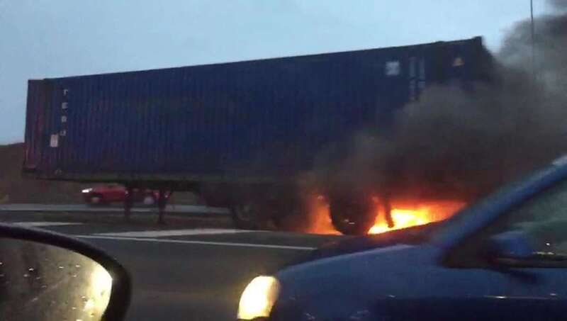 El incendio en las ruedas de un camión en la GC-1, a la altura de Jinámar, genera retenciones