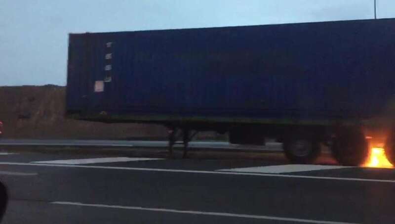 Testigos presenciales indicaron a TELDEACTUALIDAD que los neumáticos de las ruedas traseras del vehículo pesado se vieron envueltas en llamas.