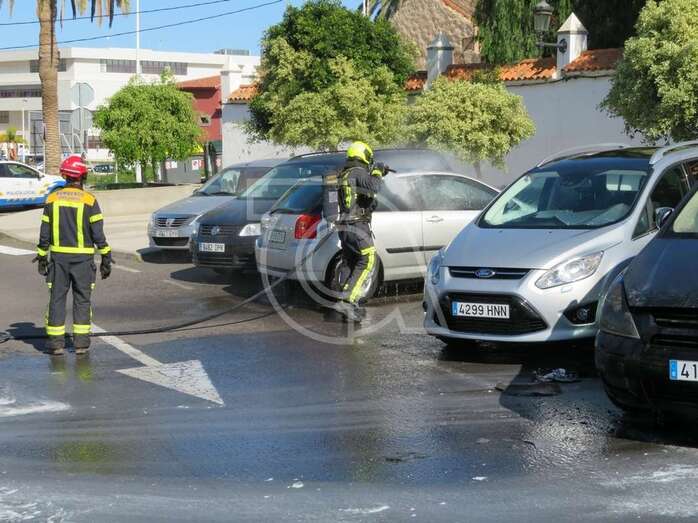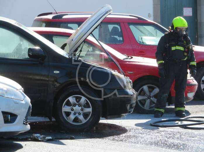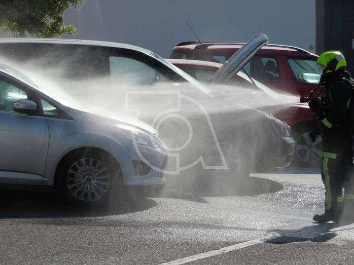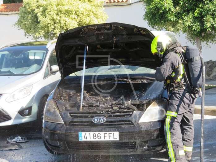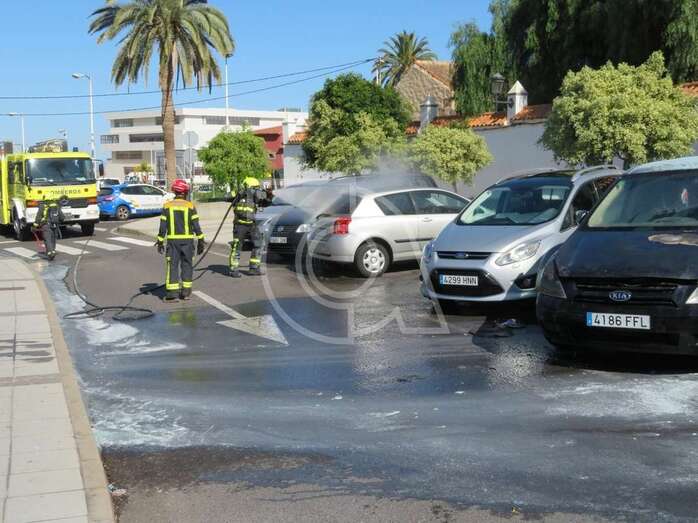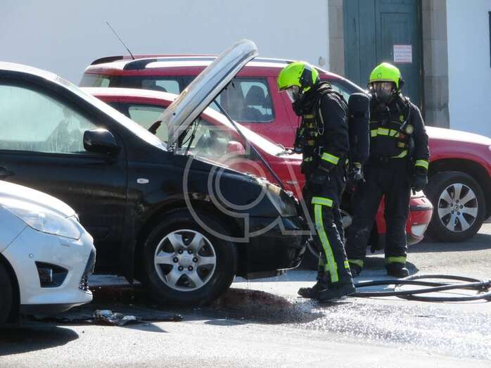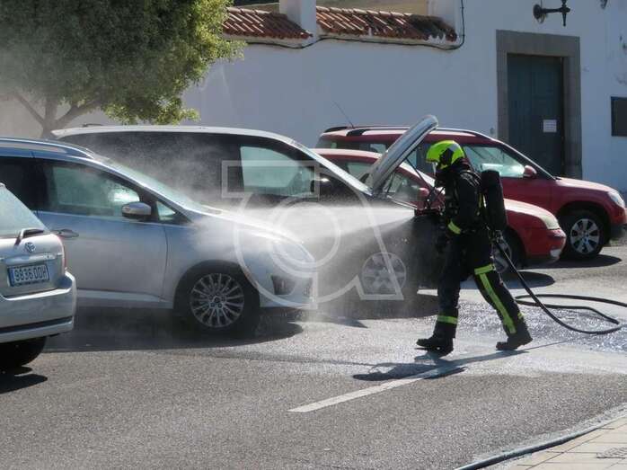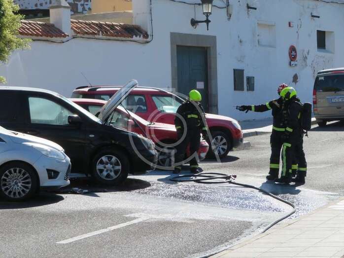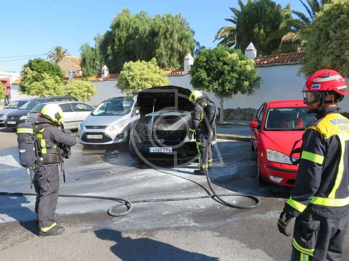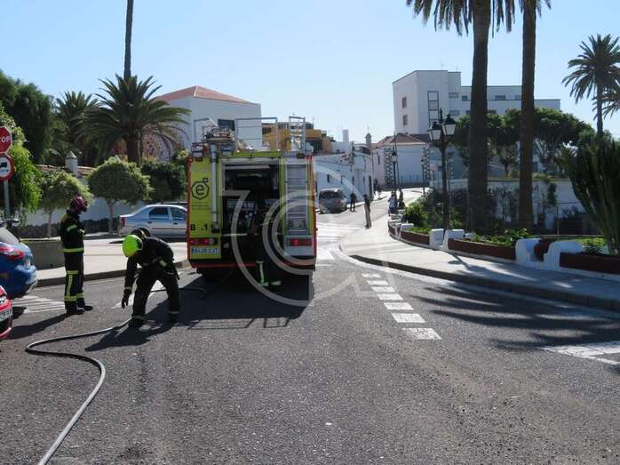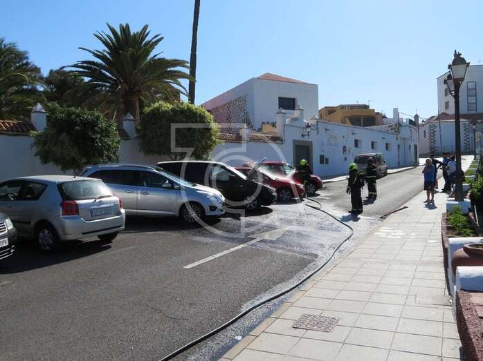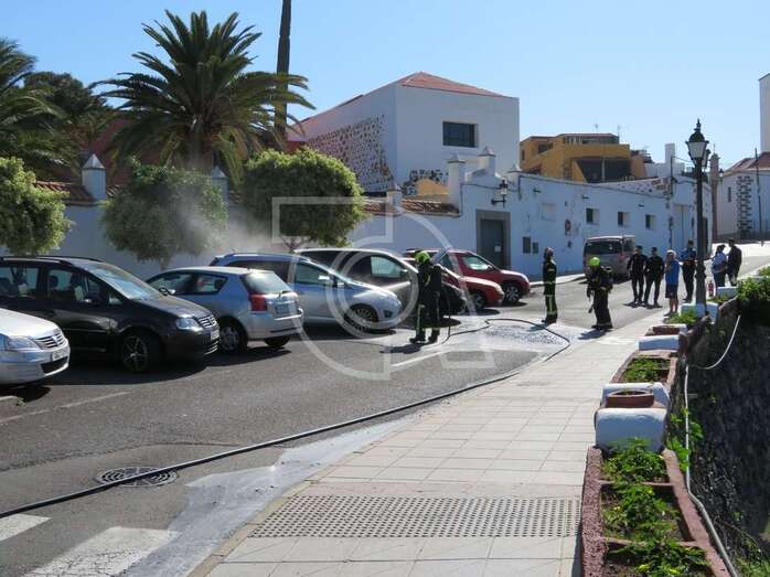 Incendio fortuito este mediodía de un vehículo en San Juan. Su conductora, que había acudido al Ayuntamiento a realizar unas gestiones, se encontró el capó envuelto en llamas.