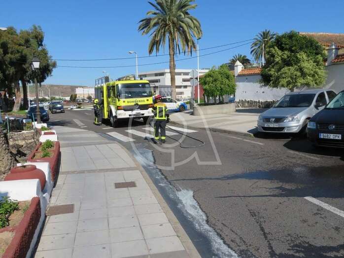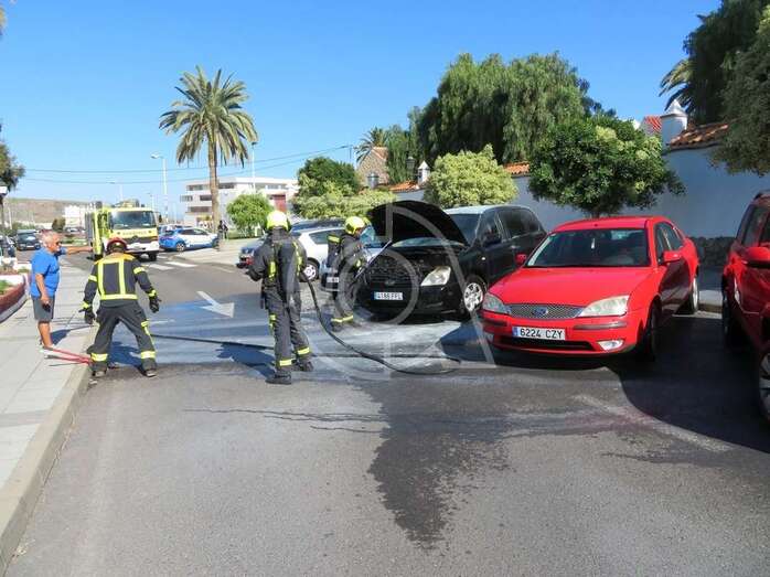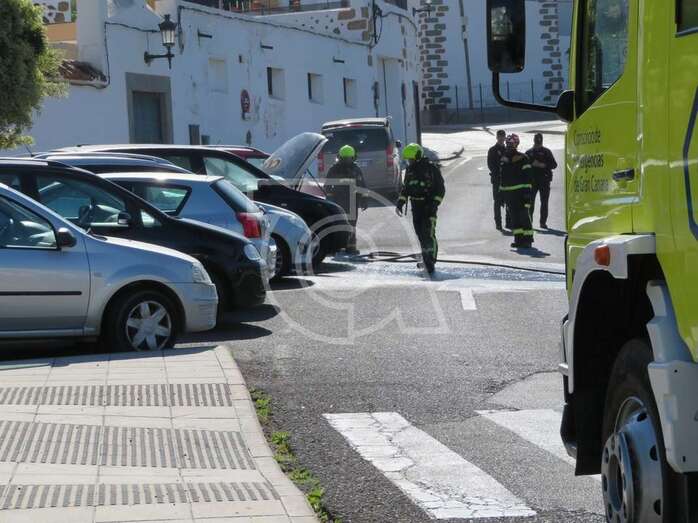 Una dotación de bomberos del Consorcio de Emergencias de Gran Canaria se desplazó desde el parque zonal de La Garita para extinguir el fuego, cuyo origen se localizó en el motor del vehículo.