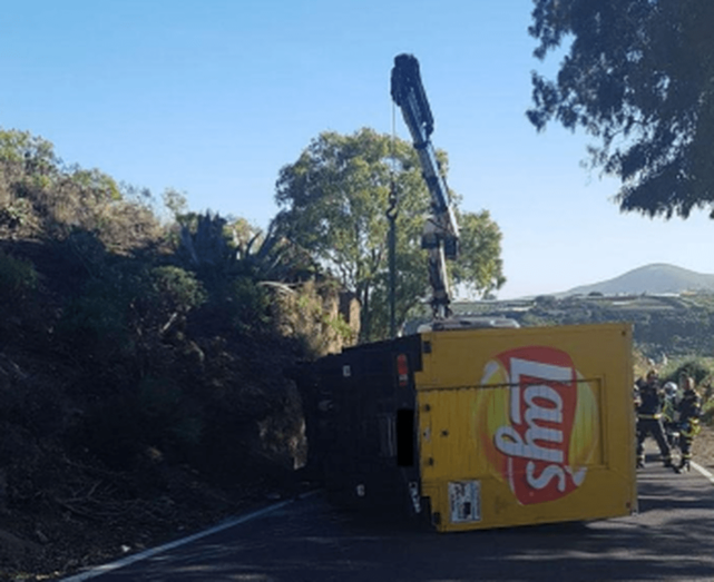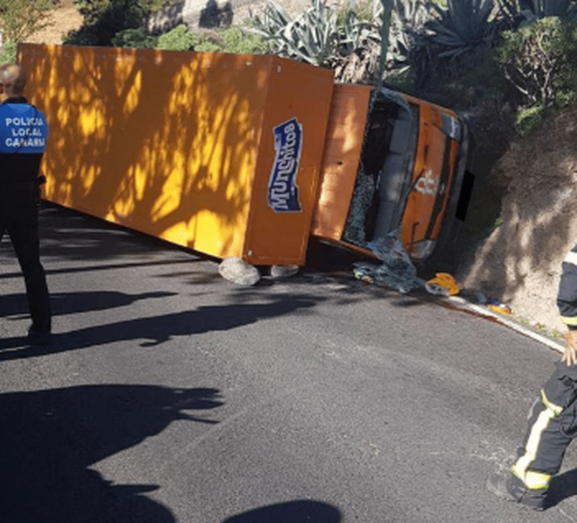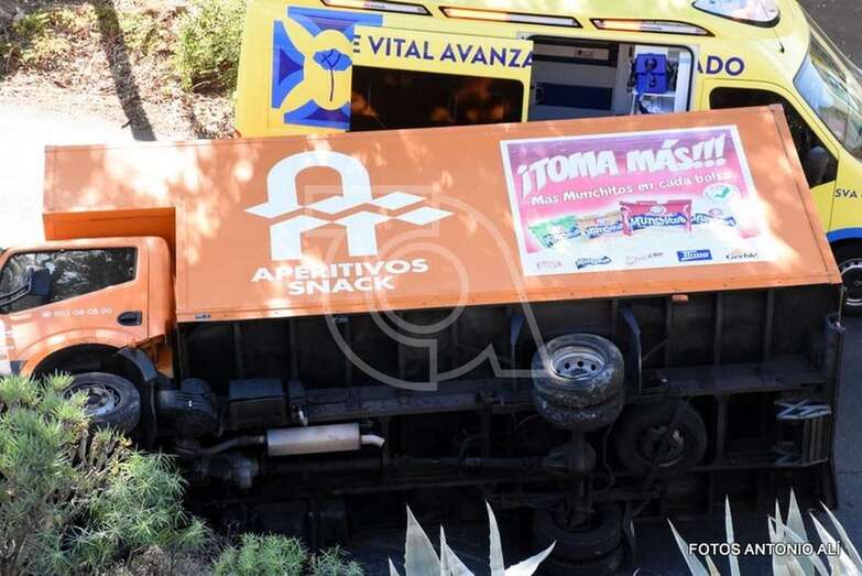 Una mujer de 35 años que iba a los mandos del camión quedó atrapada en el interior de la cabina y tuvo que ser excarcelada por los bomberos del Consorcio de Emergencias de Gran Canaria, cuyas dotaciones acudieron desde el parque zonal de Telde.